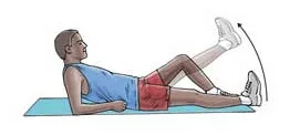 به پشت بر روی زمین دراز بکشید. زانوی طرف سالم را خم کرده و کف پای آن سمت را بر روی زمین قرار دهید. پای مقابل را بدون اینکه زانوی آن را خم کنید به اندازه یک وجب از روی زمین بلند کنید. این حالت را چند ثانیه حفظ کرده و سپس پا را آهسته بر روی زمین قرار دهید. نرمش را در ۳ ست ده تایی انجام دهید.