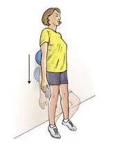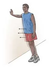 در کنار یک دیوار ایستاده بطوریکه یک شانه شما به دیوار نزدیکتر باشد. یک دست را برای کنترل بیشتر بر روی دیوار قرار دهید. پایی را که از دیوار دور است را در جلوی پای دیگر قرار دهید. کف هر دو پا را بر روی زمین نگه دارید. سپس لگن خود را به طرف دیوار نزدیک کنید. این وضعیت را ۳۰-۱۵ ثانیه حفظ کرده و سپس مجدد به حالت اولیه برگردید. حرکت را سه بار تکرار کنید. حرکت را برای پای مقابل هم انجام دهید.