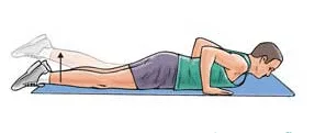 به شکم بر روی زمین بخوابید. پای طرف مشکل دار را از پشت به اندازه یک وجب از زمین بلند کنید. این حالت را چند ثانیه حفظ کرده و سپس پا را آهسته بر روی زمین قرار دهید. نرمش را در ۳ ست ده تایی انجام دهید.